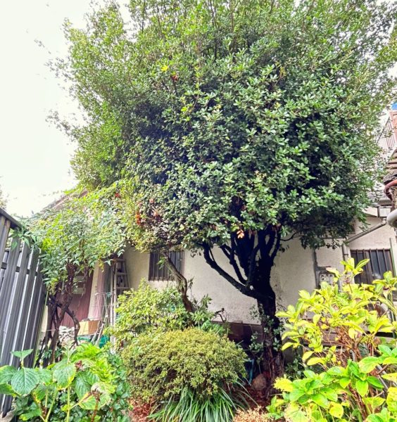 イチョウの奥にあったタイサンボクは高さを半分ほど落とし、さっぱりとしました。